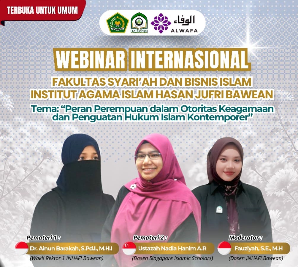 Rabu, 17 desember 2025, Fakultas Syariah dan Bisnis Islam Institut Agama Islam Hasan Jufri Bawean adakan webinar internasional dengan tema: “Pera Perempuan dalam otoritas keagamaan dan penguatan hukum Islam Kontemporer”.